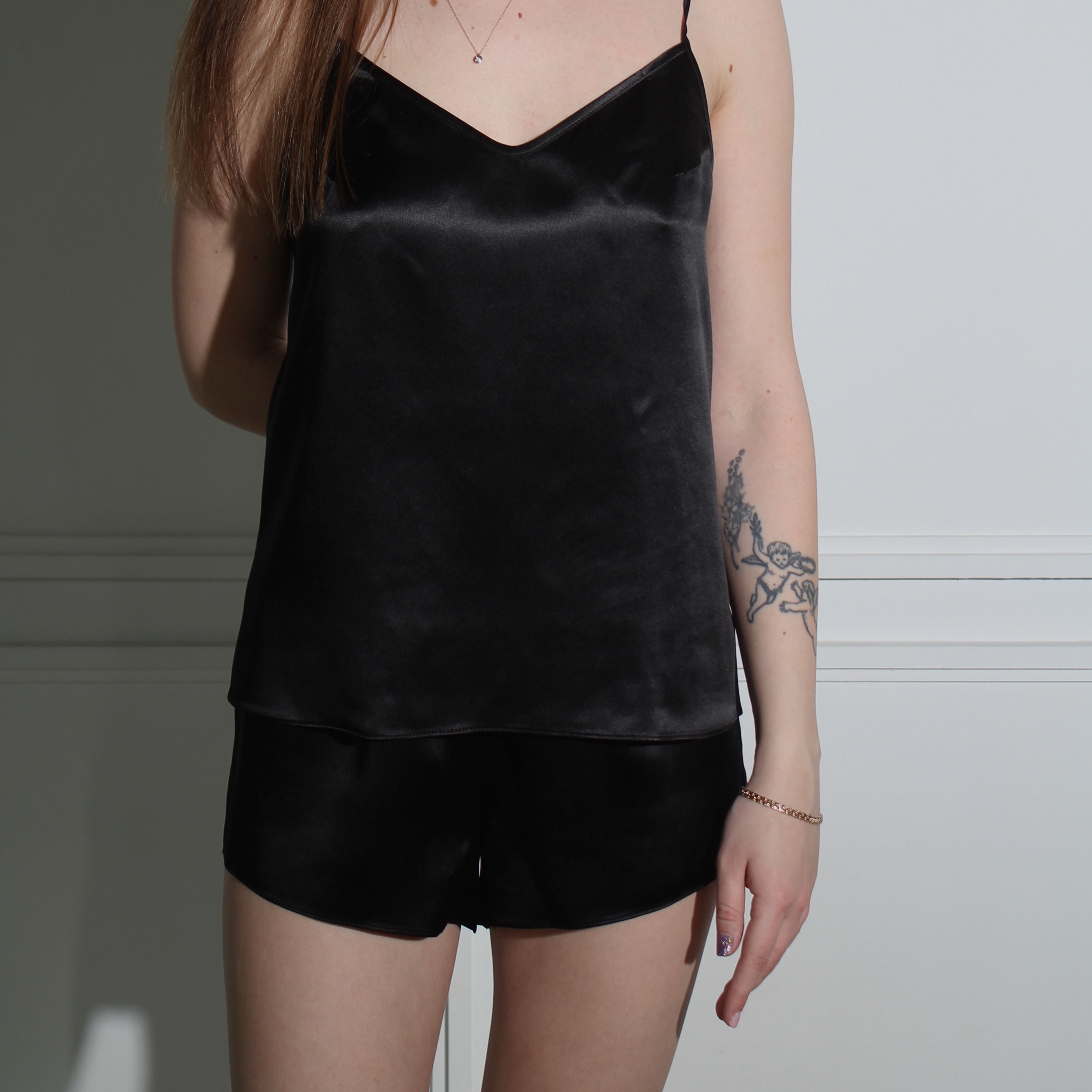 Juoda šilkinė dviejų dalių pižama