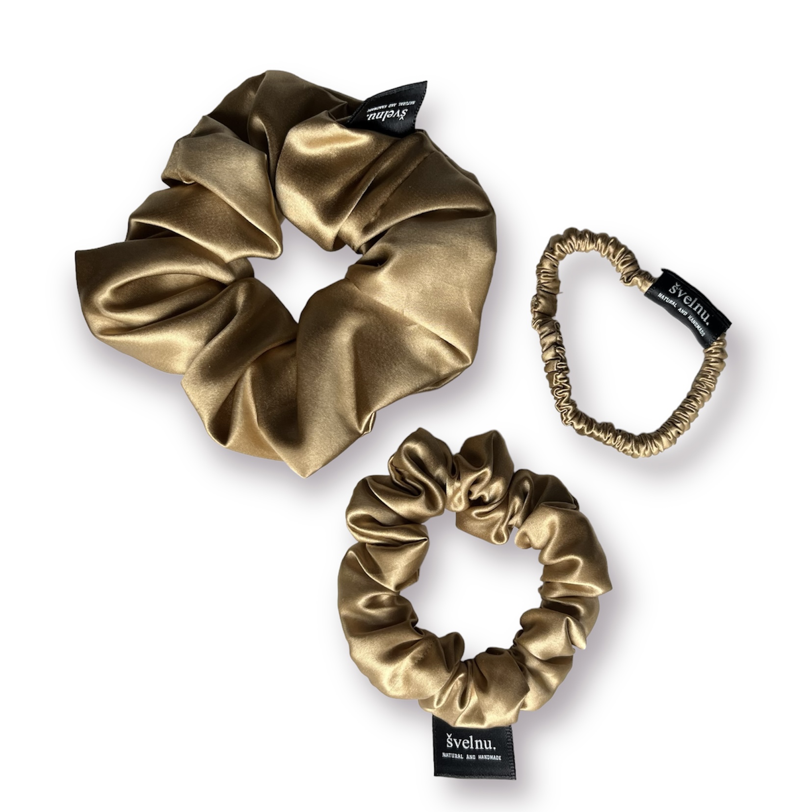 Auksinės spalvos šilkinės plaukų gumytės