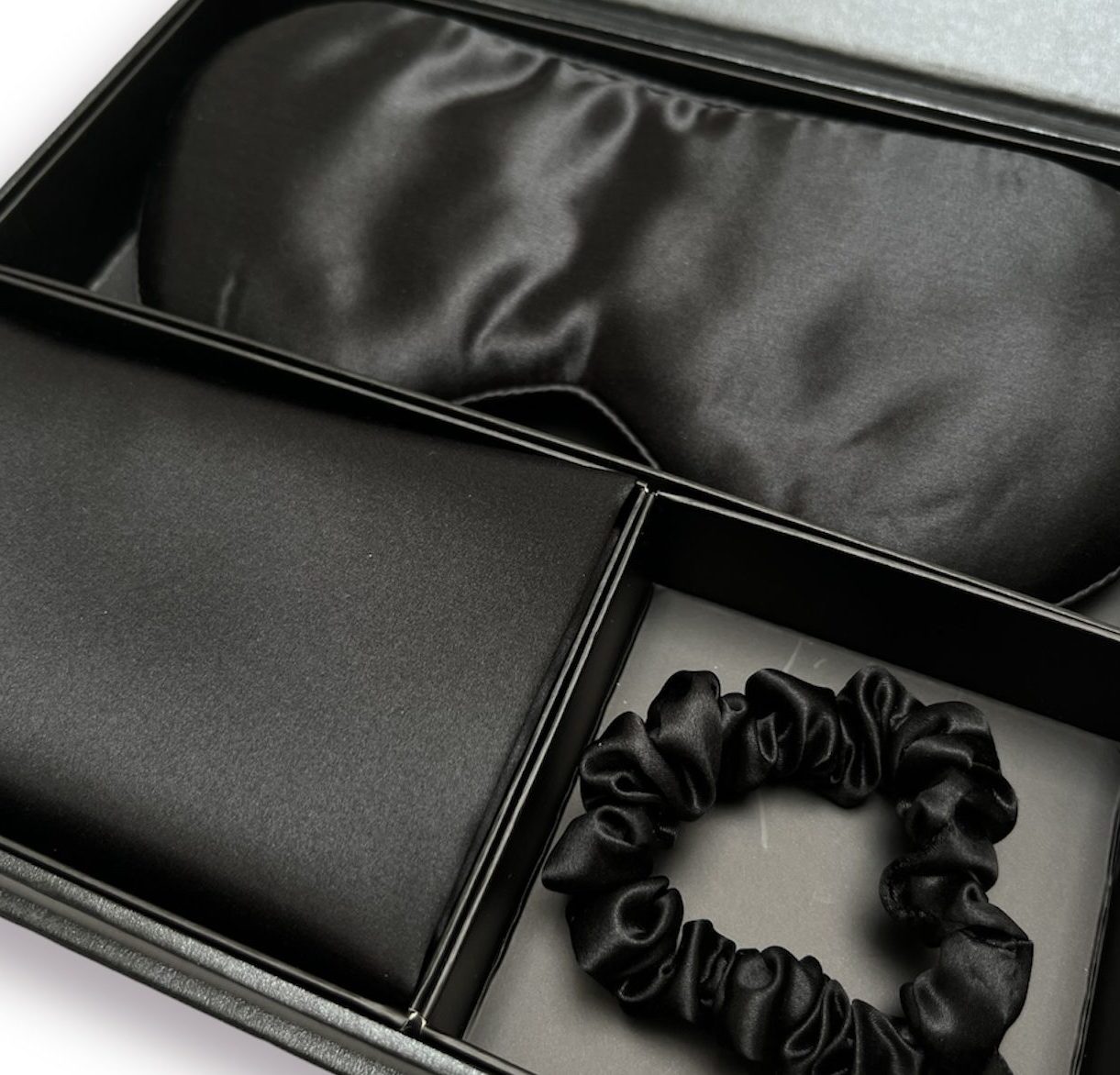 Juodos spalvos šilkinis “Gero miego” rinkinys